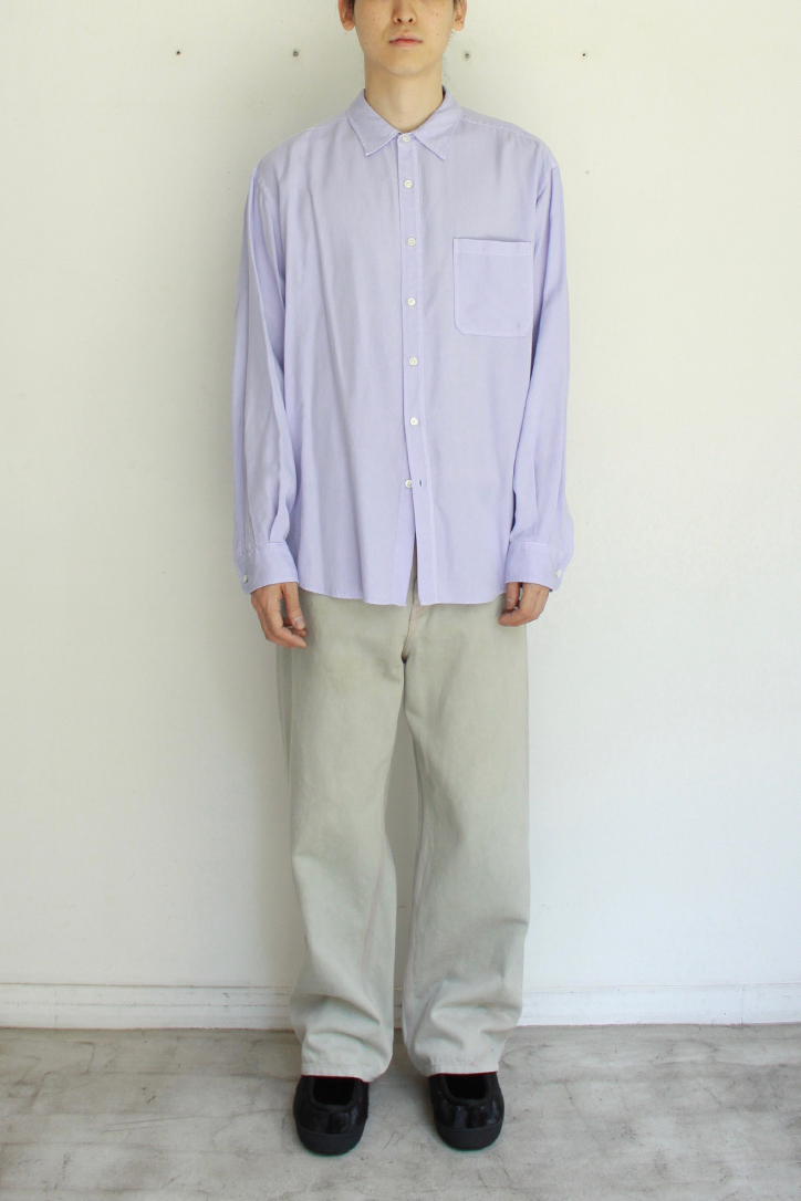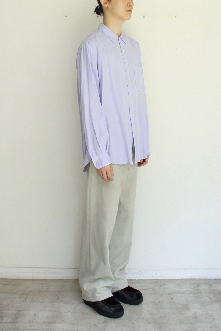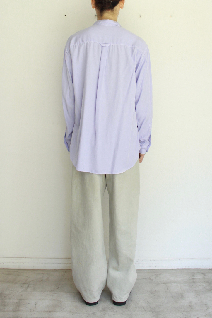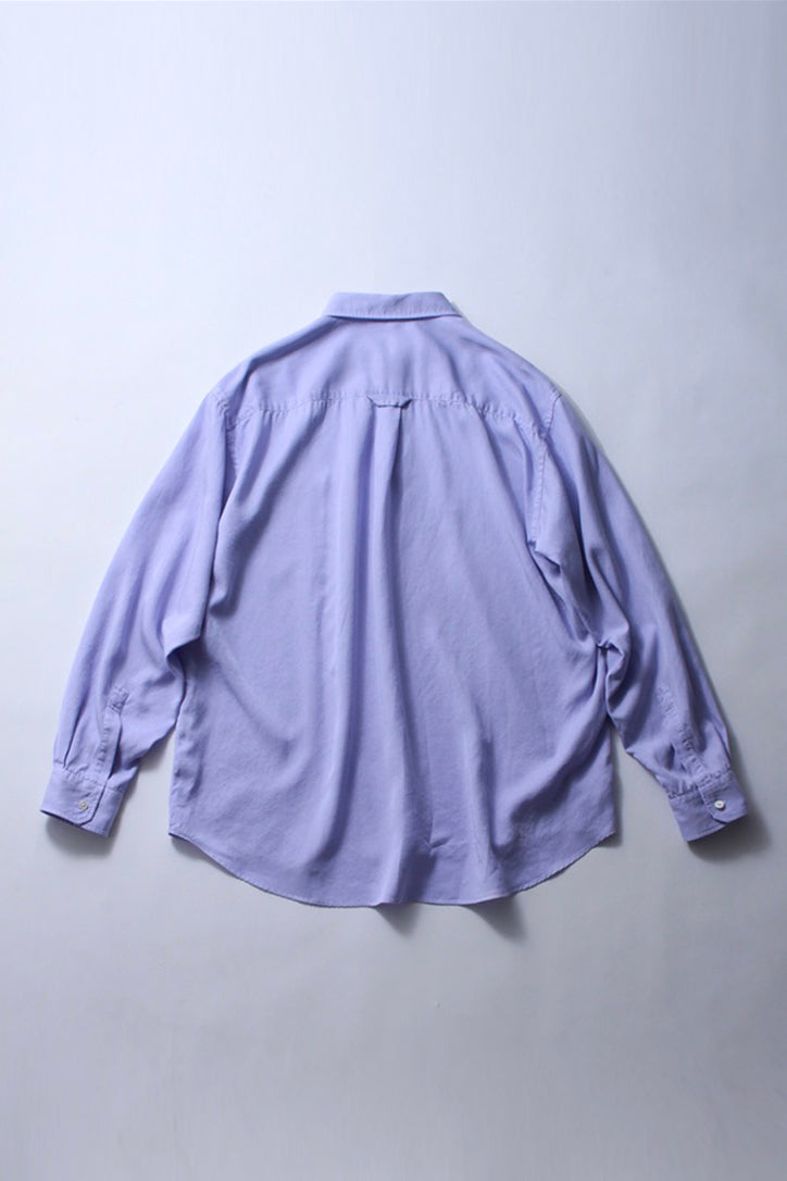 ゆったりとしたボックスシルエットのレギュラーシャツです。コットンライクなテンセルツイルを使用し、綿の様なナチュラルな表情とテンセルの柔らかく、落ち感のある自然な光沢感が特徴的です。製品染めで仕上げることで、絶妙な色合いに仕上がっています。