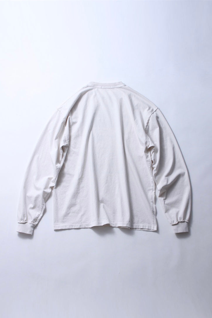 袖や衿ぐりのリブ付けやタコバインダーなどを表に出したインサイドアウト仕様のロングスリーブTシャツです。世界中の新聞社のレターをコラージュしたプリントで、フォントやレイアウトなど全く別の印象を受けるレターをコラージュし、普段から目にするフォントの奥深い世界を感じることが出来ます。